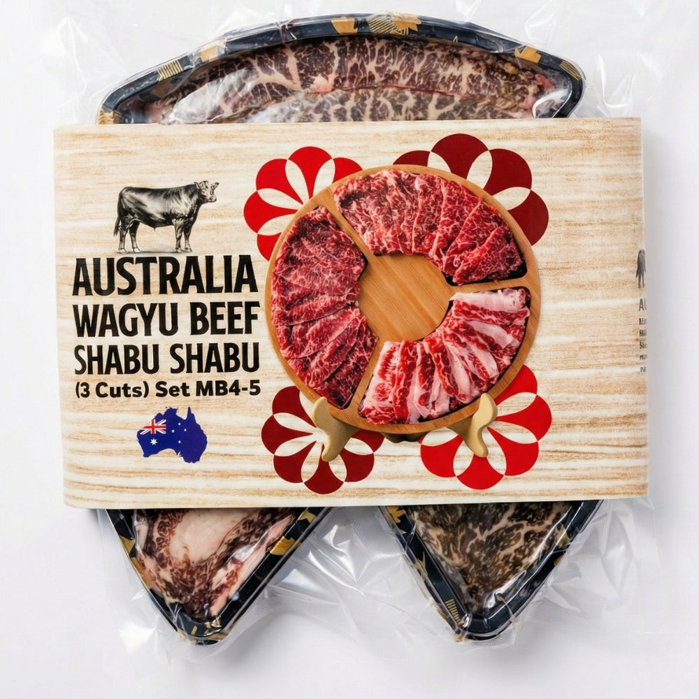 Celebrate in style with our Australia Wagyu Beef Shabu Shabu Set. Expertly curated for the perfect balance of texture and marbling, this premium selection features a Marble Score of 4-5, ensuring every slice melts in your mouth.